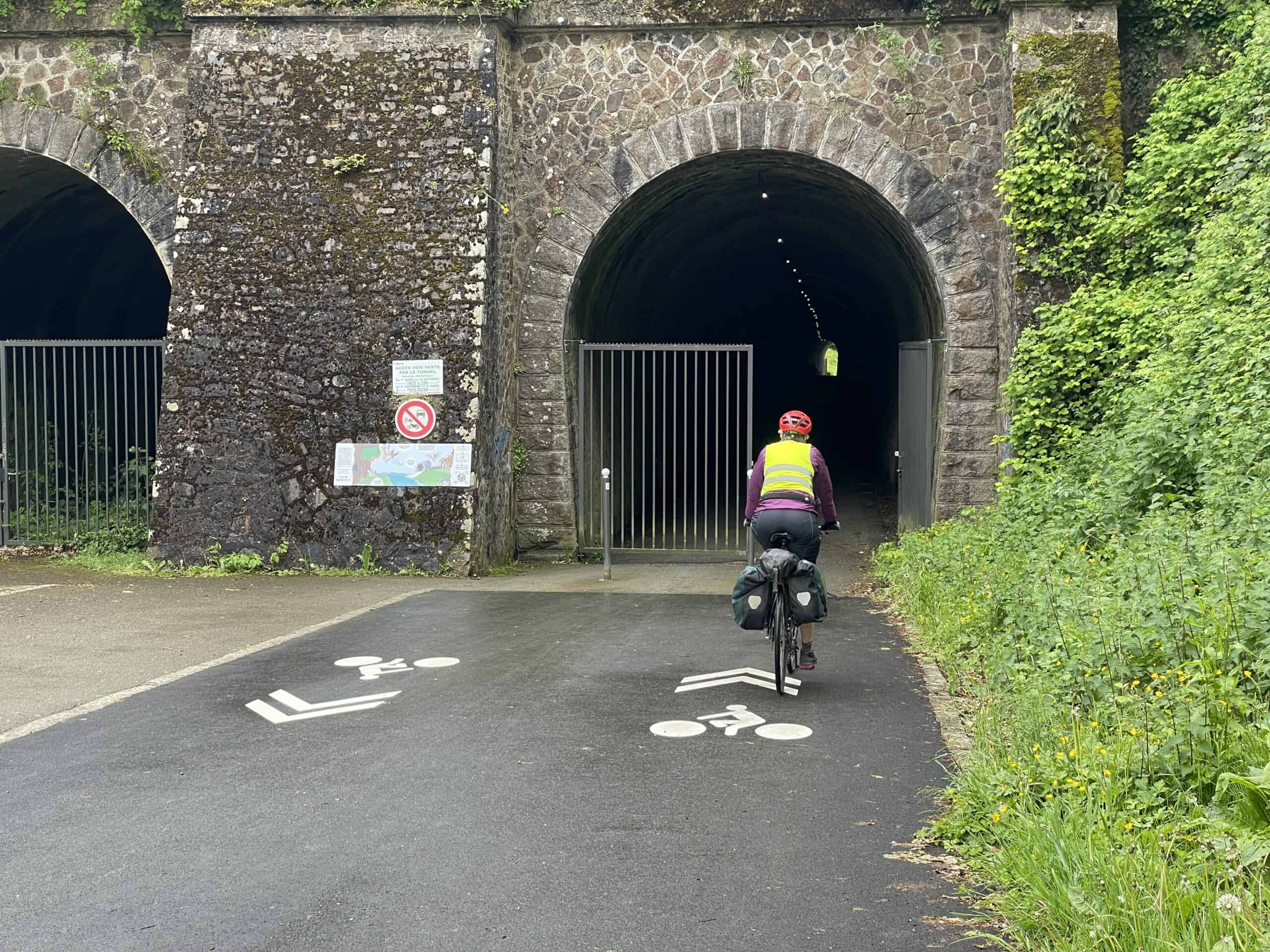 A couple of van drivers warned us that there was an accident ahead and the road was completely impassable. We had to find an alternative route which turned out to be a lovely off-road cycle path (a Voie Verte) all the way to Fougères, complete with a fun disused railway tunnel.