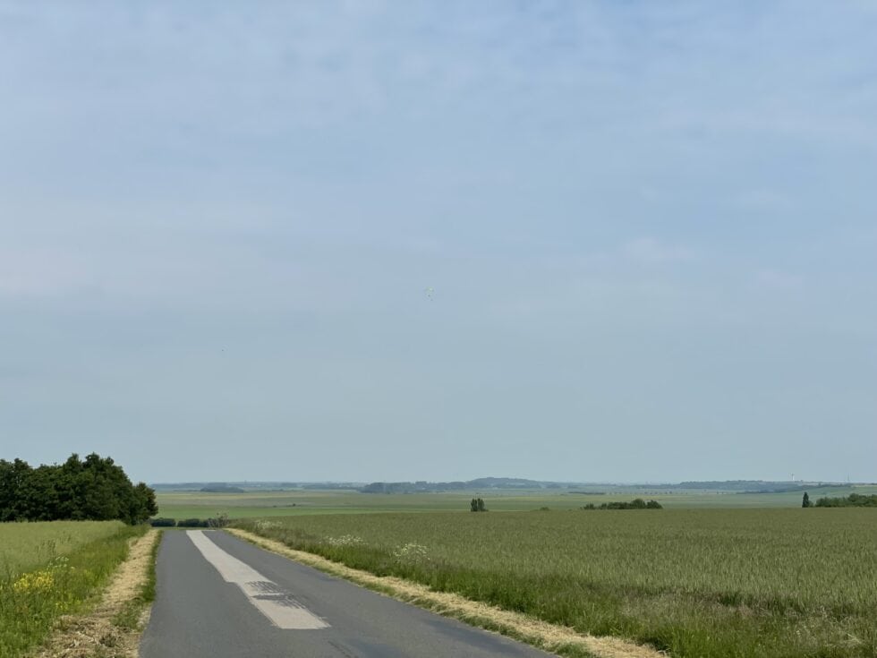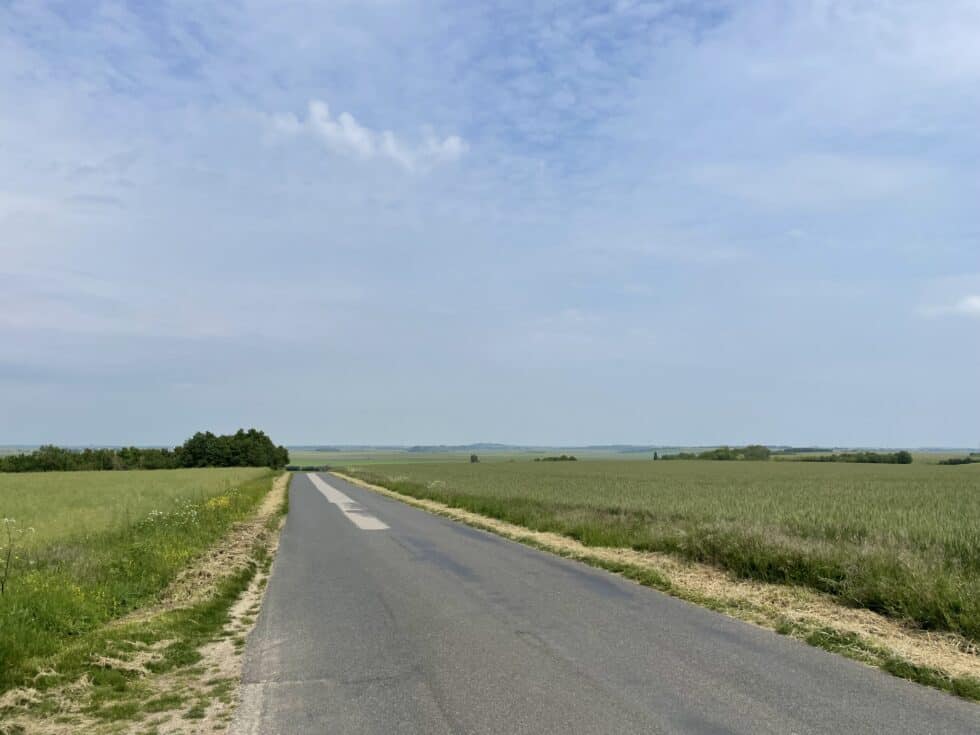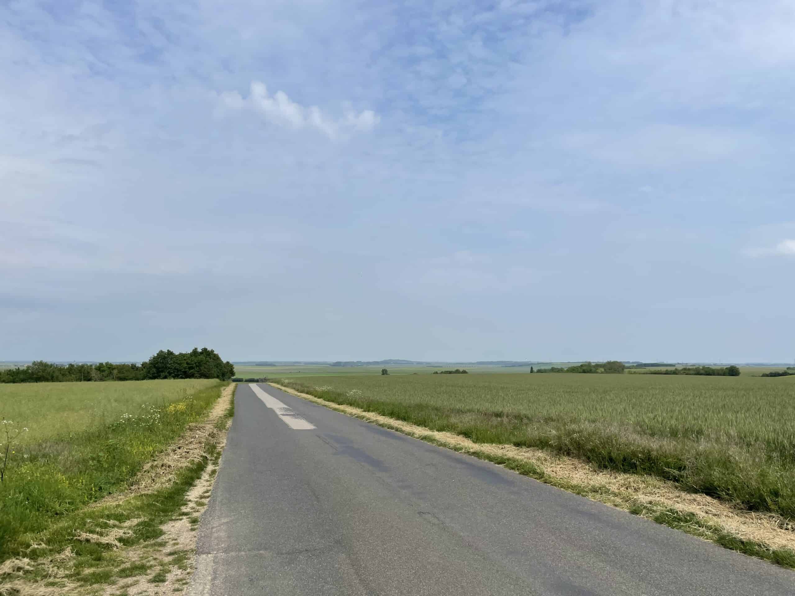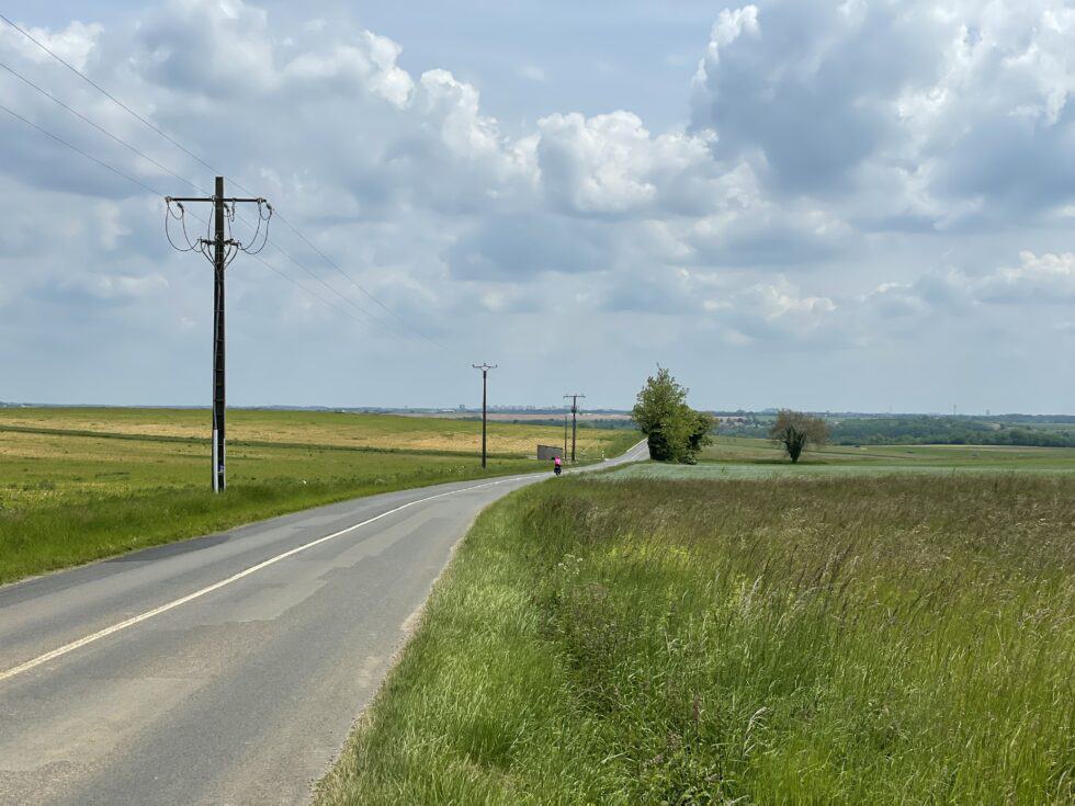 Pretty much the whole day was spent crossing wide open farmland, an area that the campsite owner had called “The Prairie”. It was a very trying day. Being able to see miles and miles ahead makes the journey seem longer. Such wide open space offers no shelter and we were at the mercy of the wind – most of the day it blew relentlessly into our faces, making riding on the flat feel like an uphill struggle and actually riding uphill felt even worse. On the plus side my knee was very much improved and only slightly painful, which was extremely welcome.
