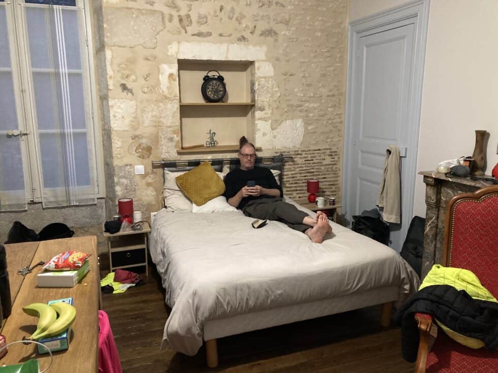 More riding into the wind for the afternoon until eventually we arrived in Poitier. Stopped at the first bar we found for a drink.