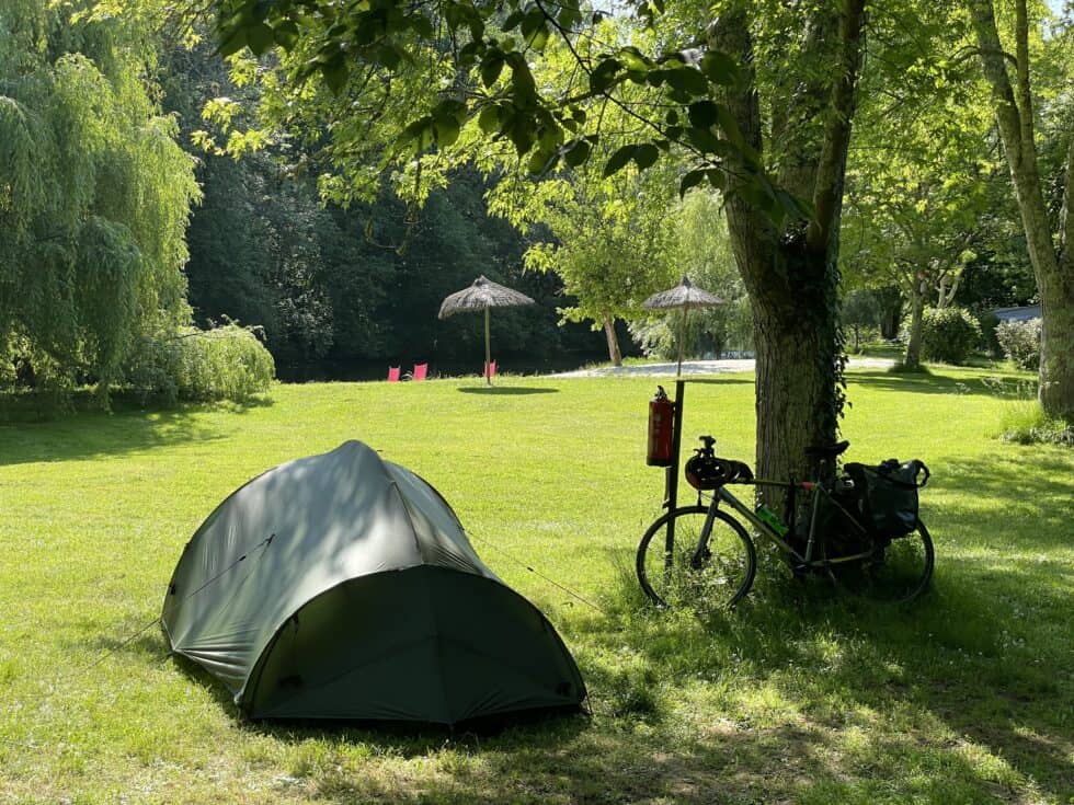 Started the day with bread and cheese outside our tent. Some ducks came to visit. We wanted to start early as we were anticipating a difficult day: 41 miles and almost 800 metres of climbing and we wanted to get to the bike shop in our destination town of Brantôme by 5.30.