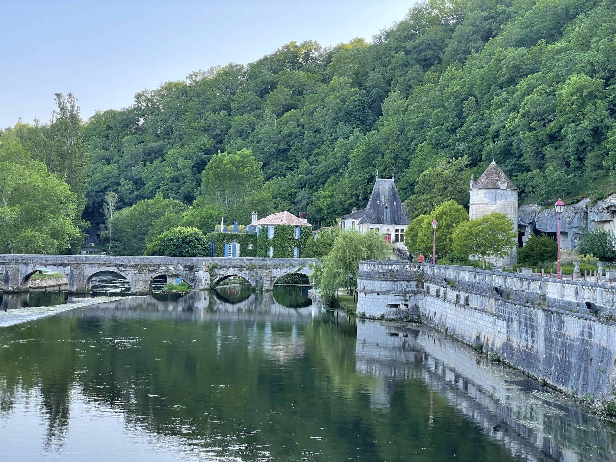 Only 1.5 miles to the campsite. Wow!! Definitely the best so far. Indoor and outdoor pools, goats, good facilities and we were able to choose our pitch so went for one with a good view of the riverside beach, complete with pink deckchairs. Had a quick swim followed by a chat with our French neighbour and then our English neighbours, then walked 15 minutes into the centre of Brantôme for dinner. It’s a beautiful old town with a river and an abbey built against a cliffside.