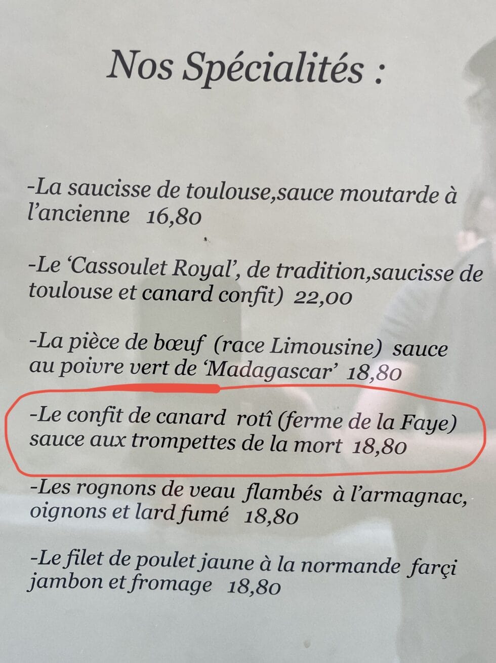 Found a small restaurant that we liked the look of. Jackie had a pizza and I opted for confit roast duck with pommes boulangère and a sauce made from trumpets of death. How could I not choose something with such an exciting name! It was super super super delicious. 10/10.