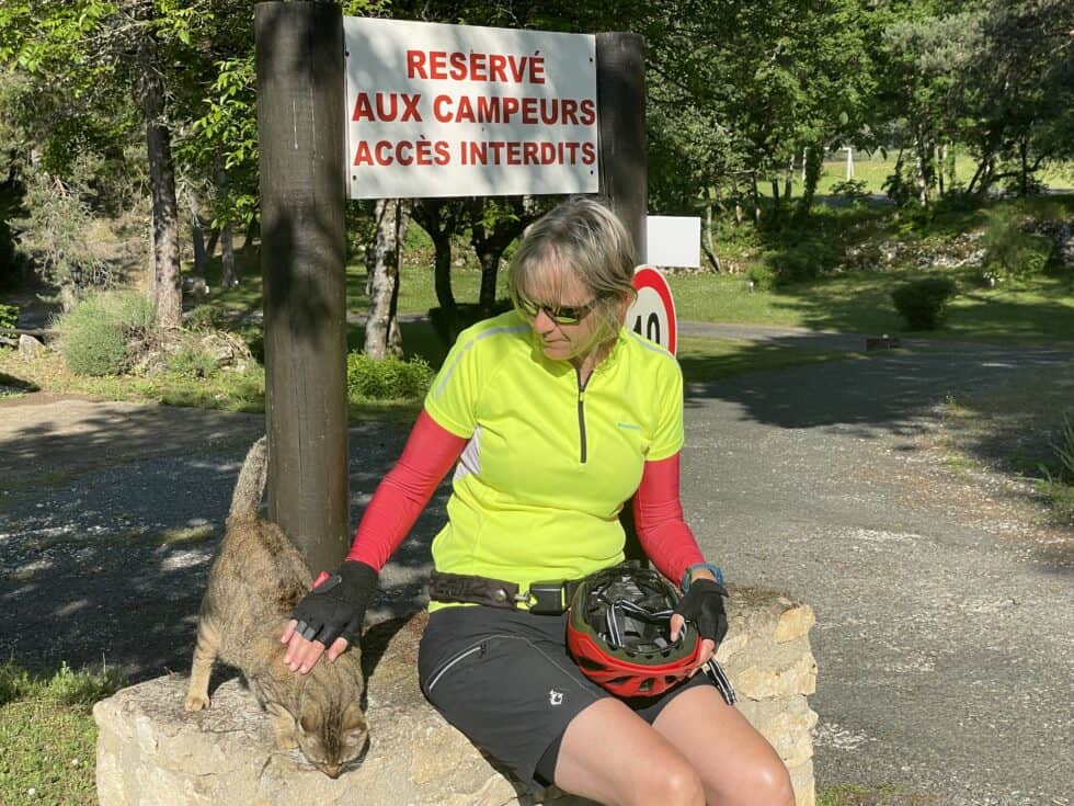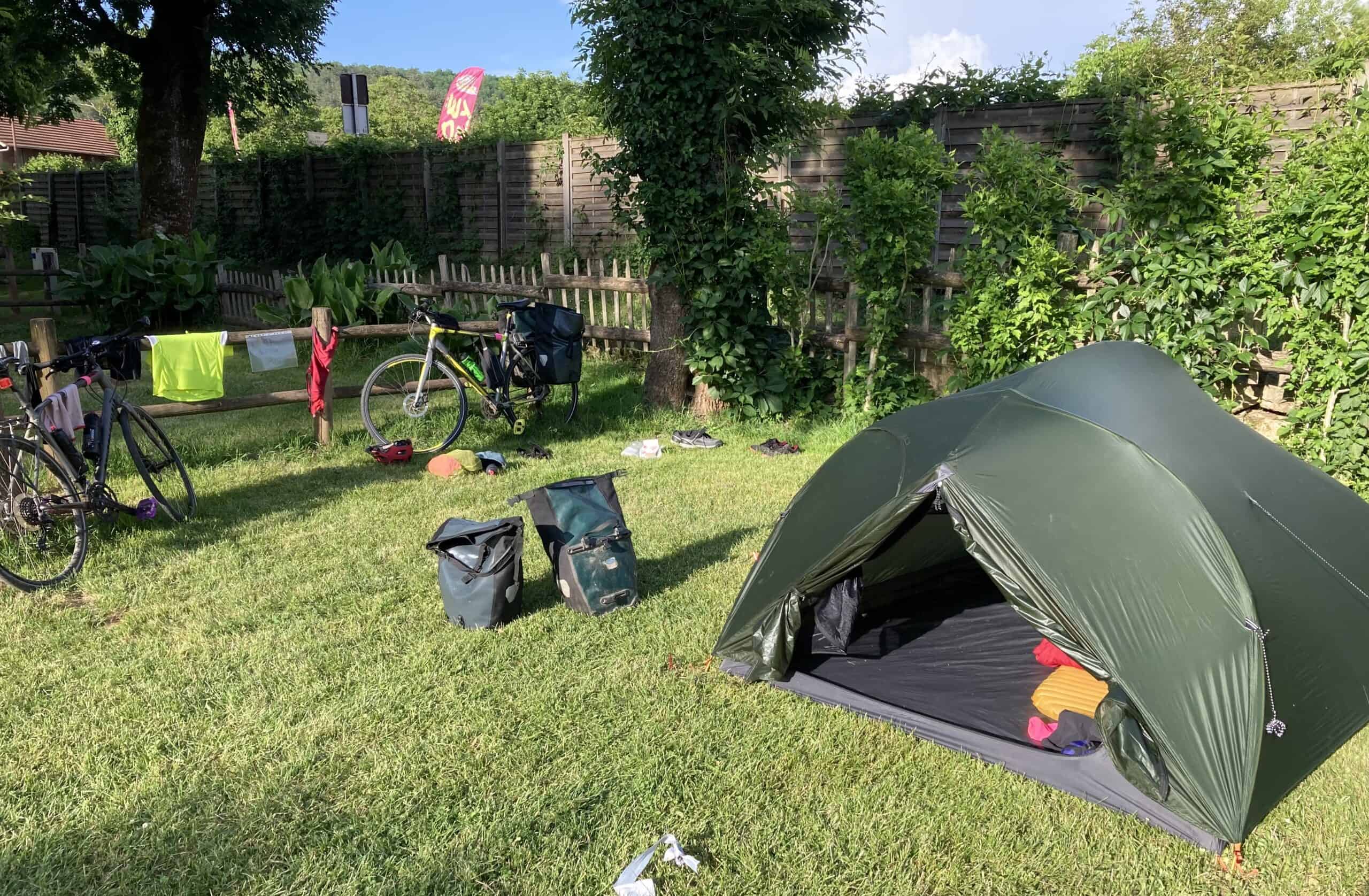 We pitched our tent anyway and some ducks came to welcome us. It was a municipal site; small, simple and basic but very lovely and right beside a river. We each took a cold shower to get some relief from the intense heat of the day and washed our dirty clothes. I stepped straight into the shower in my cycling clothes. I hadn’t anticipated that a wet cycling shirt is extremely clingy and very difficult to remove. It was a bit like being stuck in a dress (and we’ve all been there at some time haven’t we!! Haven’t we?)