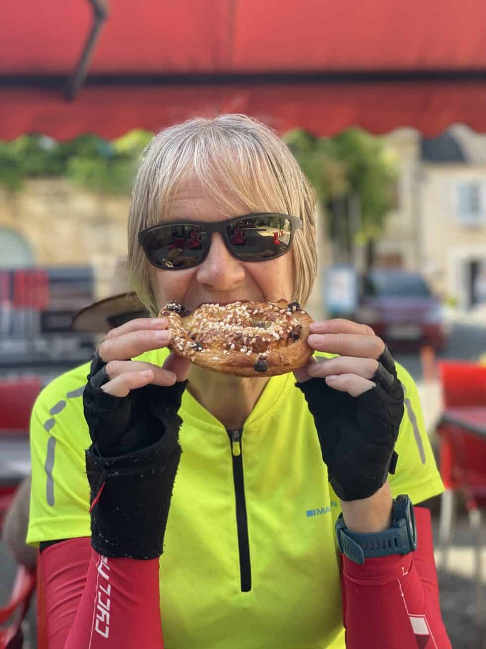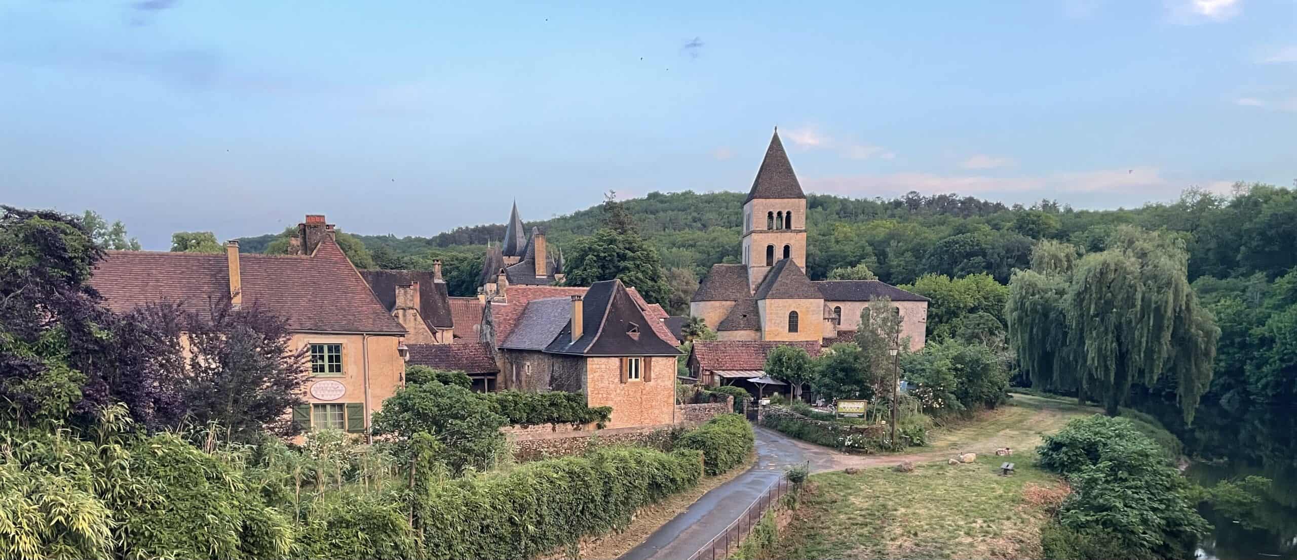 Packed up and cycled into Tourtoirac. Bought breakfast pastries from a lovely boulangerie and ate them at a friendly brasserie with coffee.