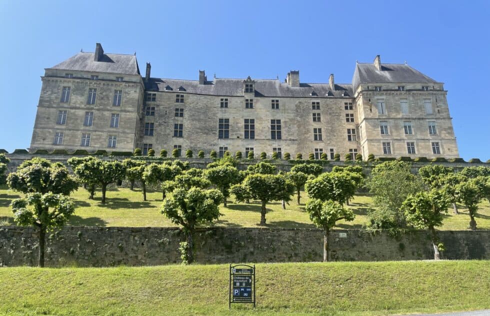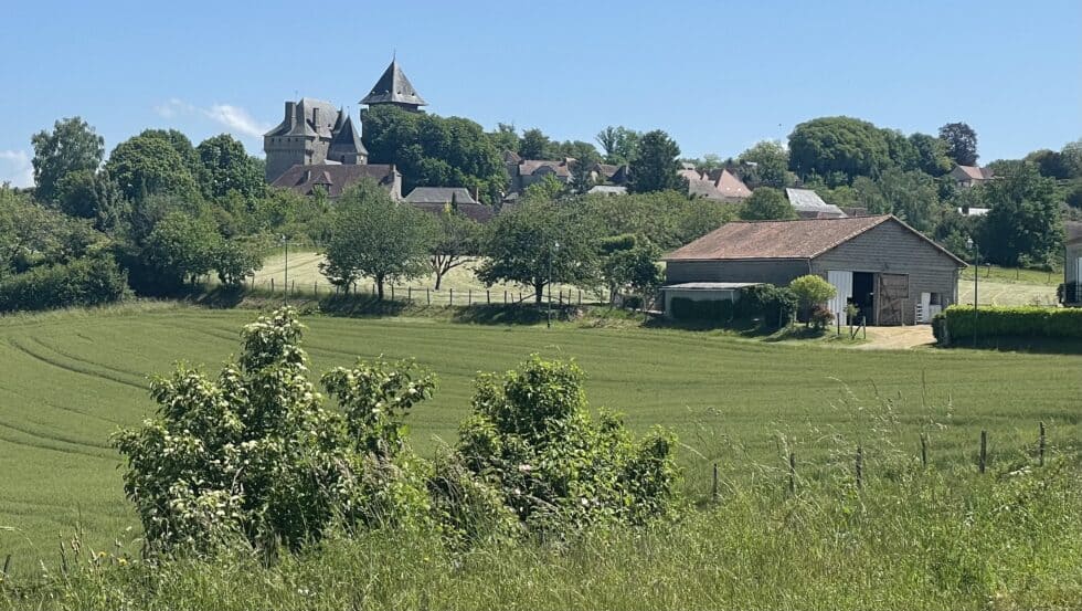 Arrived in a small village called Beauregard de Something. Took a tiny detour to look at an interesting small chateau. Turned out to be an uphill waste of time as there were no good views of it. A little further along the main street we found an epicerie/bar/café. Turned into the small car park and checked the door as we cycled past. The sign said Open – hurrah, some lunch! Leaned our bikes against a wall and headed to the door. The sign had been turned around to say Closed. The shop closed at 12.30 and it was 12:33. Just three minutes late – arse!