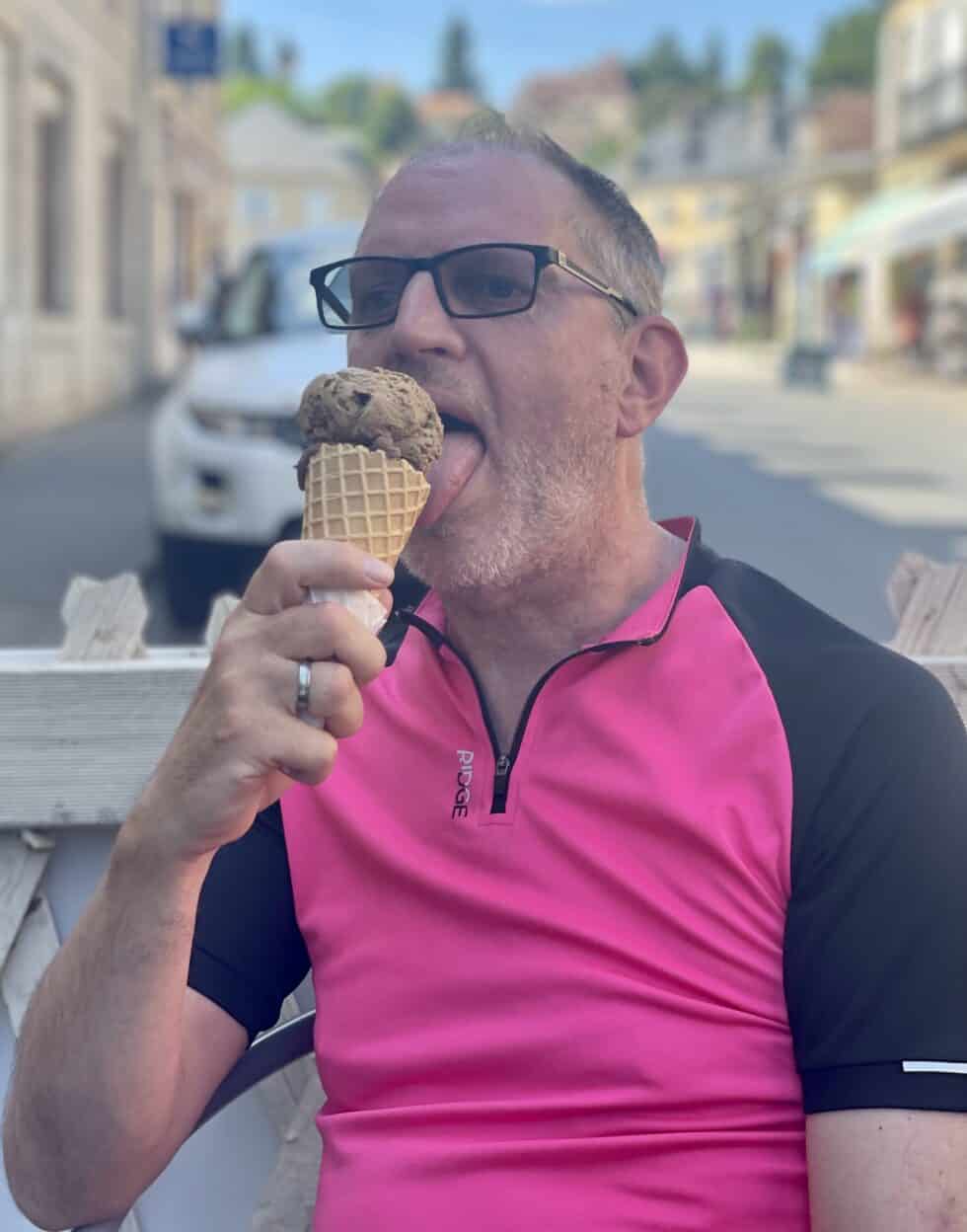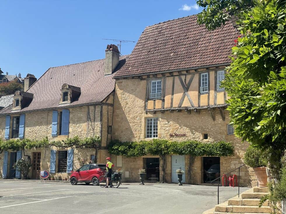 I usually avoid caffeine. A full-fat coke with caffeine and sugar was enough to power me up to warp speed for all of the 7 mile flat ride to Montignac Lascaux. It was a beautiful town, ancient buildings either side of a river. We explored a little and ate ice creams.