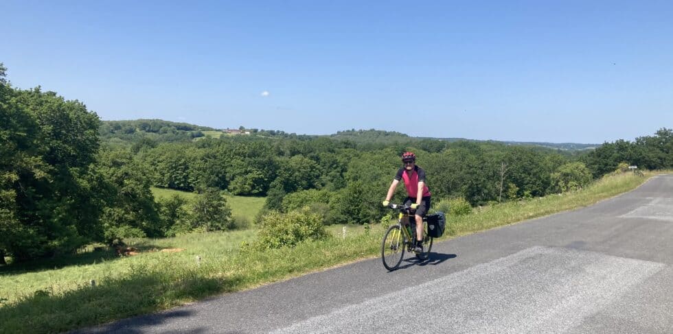 Next a scenic ride beside the river followed by some predominantly flat countryside until we reached the final climb of the day. Much smaller than this morning’s 10-miler but still very hard work with the sun beating down and temperature up to 32. Finally a downhill ride all the way to our destination of Saint-Léon-sur-Vézère.