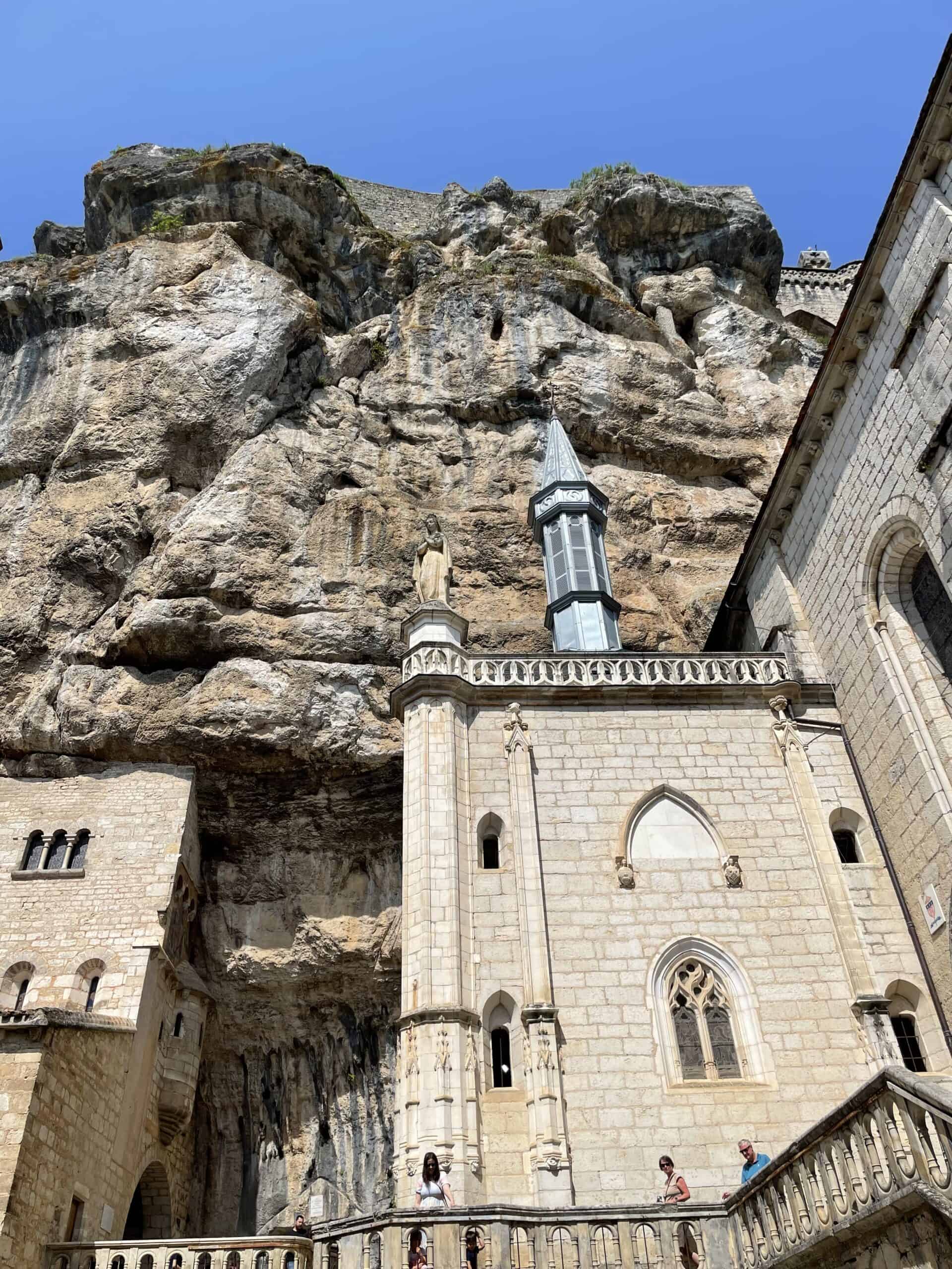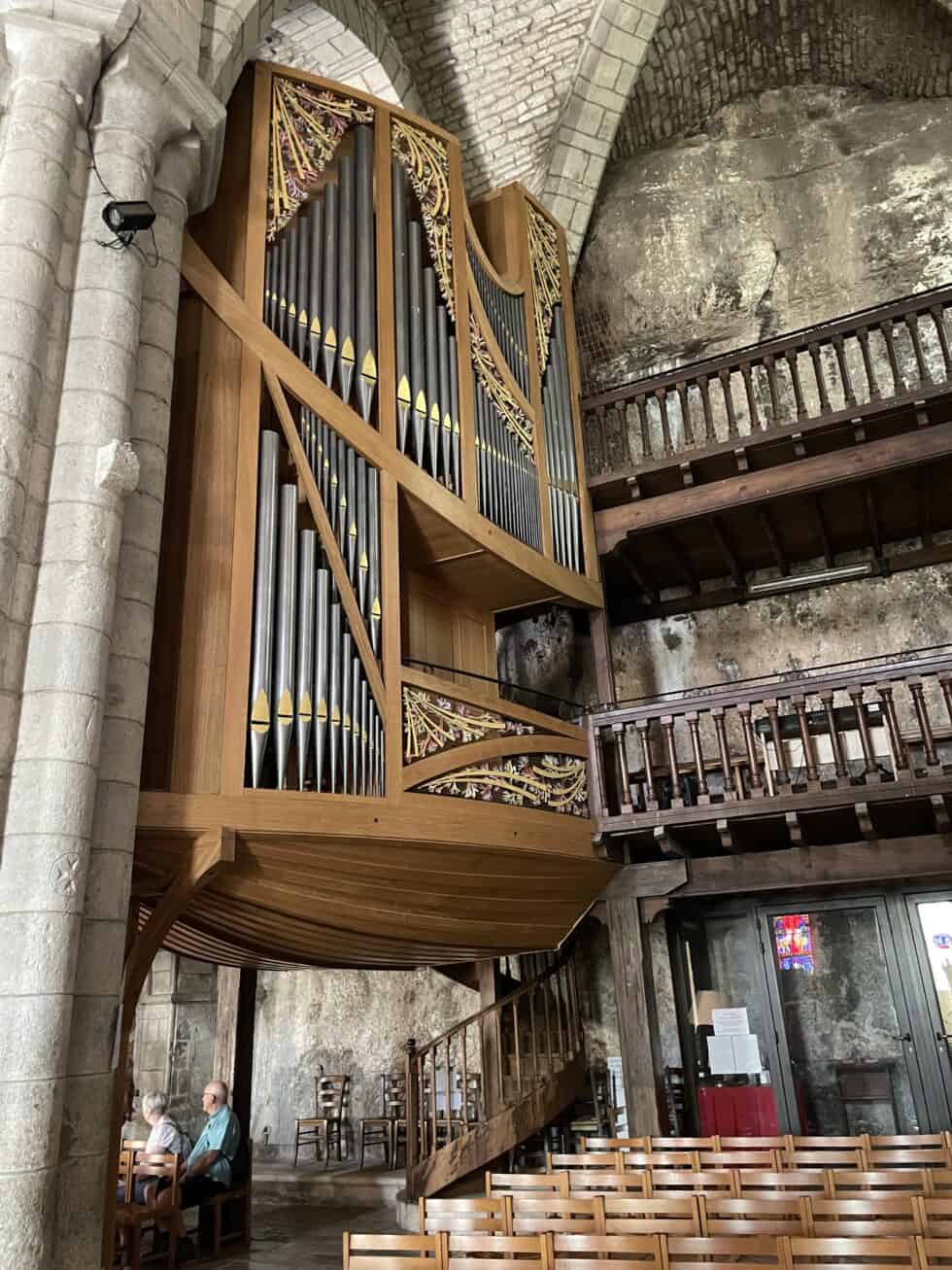Walked down the cliffside path to Rocamadour. Visited the 12th century church and sanctuary. Quite an incredible building with a fantastic looking big organ – I wish we could have heard it. The back wall of the church is solid rock. There was some kind of service taking place in a side chapel and the singing enhanced the atmosphere.