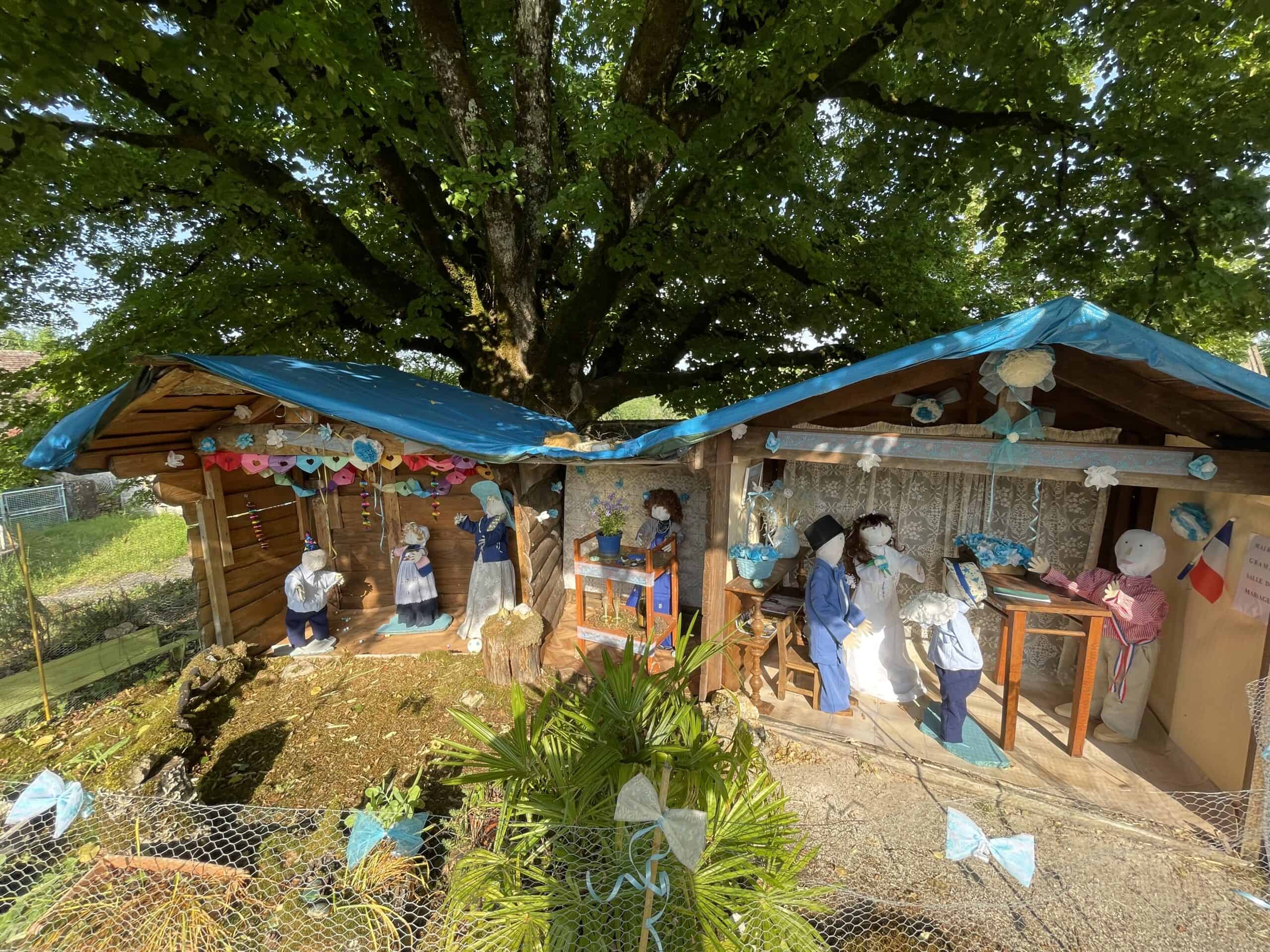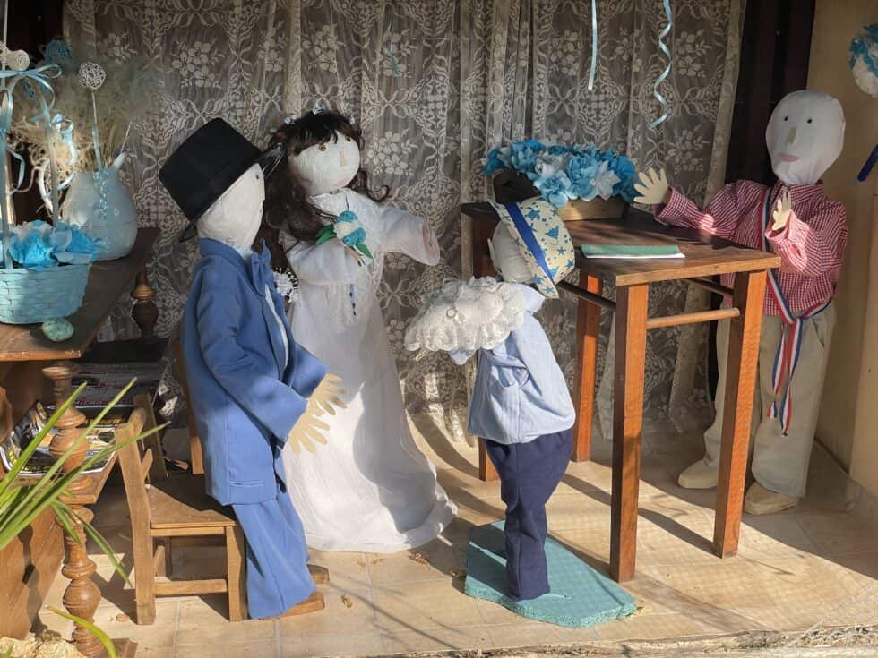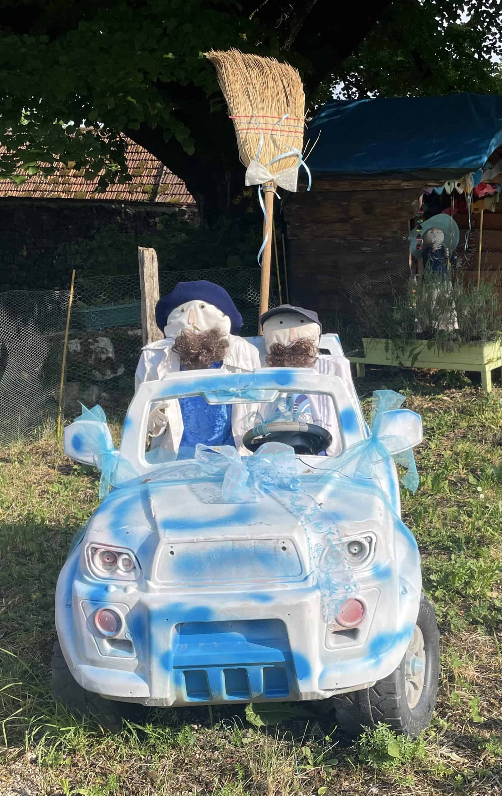 Then off to the campsite. We found a lovely wedding tableau on the way, outside the entrance to a farm.